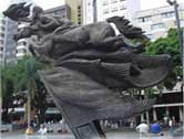 En la Plaza Bolívar de Pereira, municipio Caldas, Colombia, es erigida una imagen poco tradicional, El Bolívar desnudo de Rodrigo Arenas Betancourt.