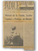 Con una invitación de un miembro de la embajada de Venezuela en España, Manuel de La Fuente emigra a Venezuela. Es contratado por el arquitecto Manuel Mújica para tallar en madera la sillería del coro, el púlpito y unos ángeles del altar mayor para la Catedral de Mérida. Se establece posteriormente en la ciudad.